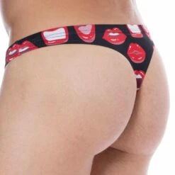 String de bain trÚs sexy en microfibre extensible et résistante, séchant rapidement. Imprimé original et provocant avec ses bouches pulpeuses. Coupe taille basse et trÚs ajustée. EntiÚrement doublé. Ceinture élastique. Fabrication 100% italienne.