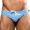 String de bain trÚs sexy en microfibre extensible de couleur intense. Imprimé abstrait original. MatiÚre agréable à porter et respirante. Poche frontale préformée, non doublée. Etiquette Manstore cousue sur la hanche gauche.