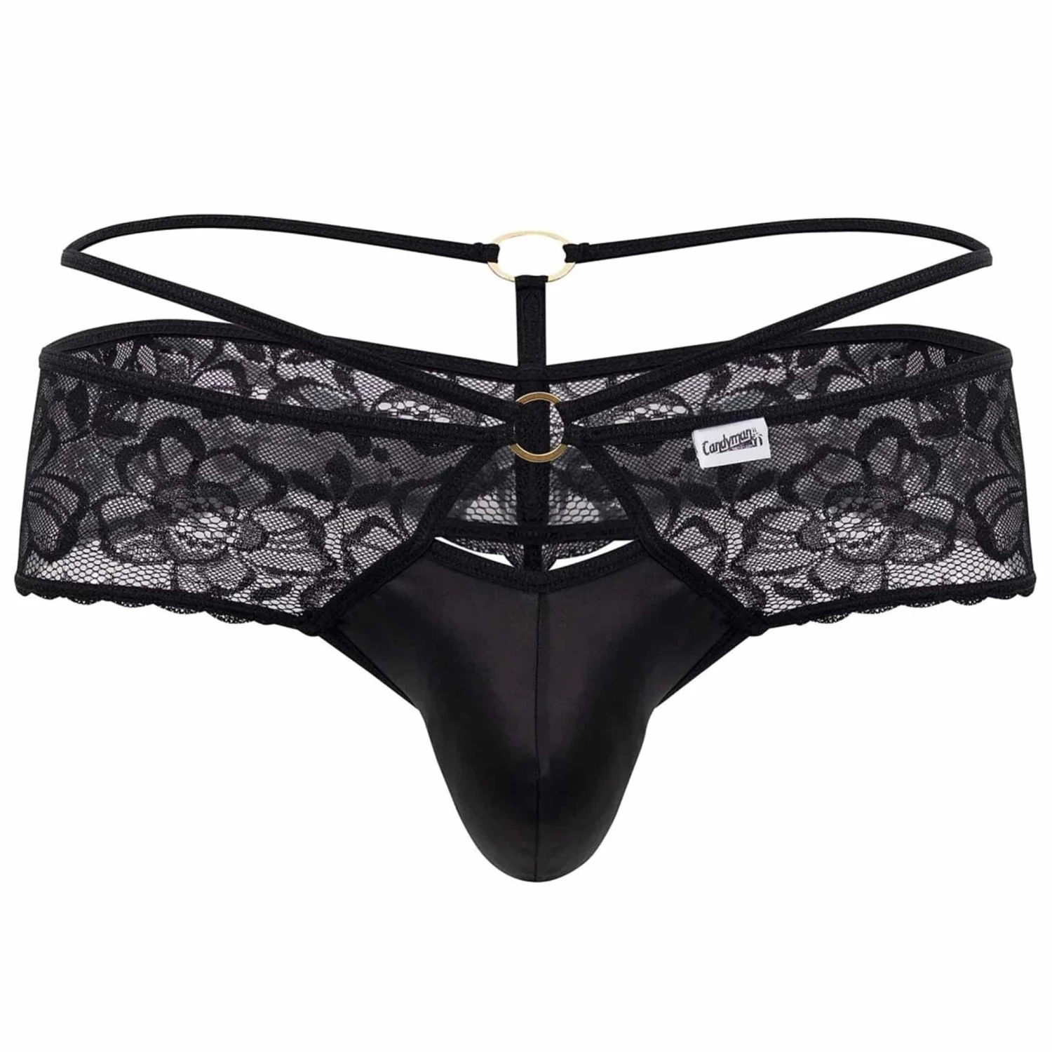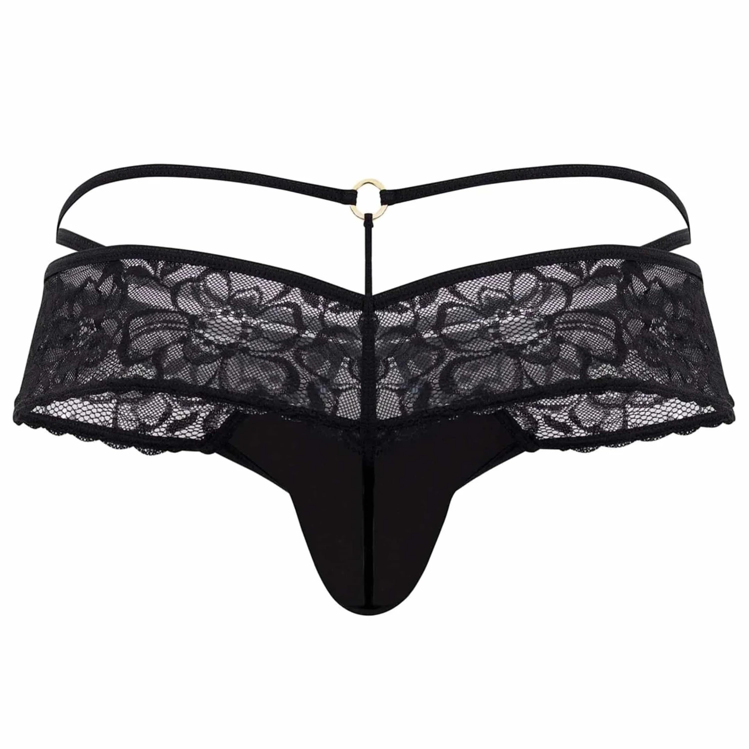 String trÚs sexy en dentelle microfibre stretch douce et soyeuse. Désign original et provocant. Poche frontale préformée non doublée.