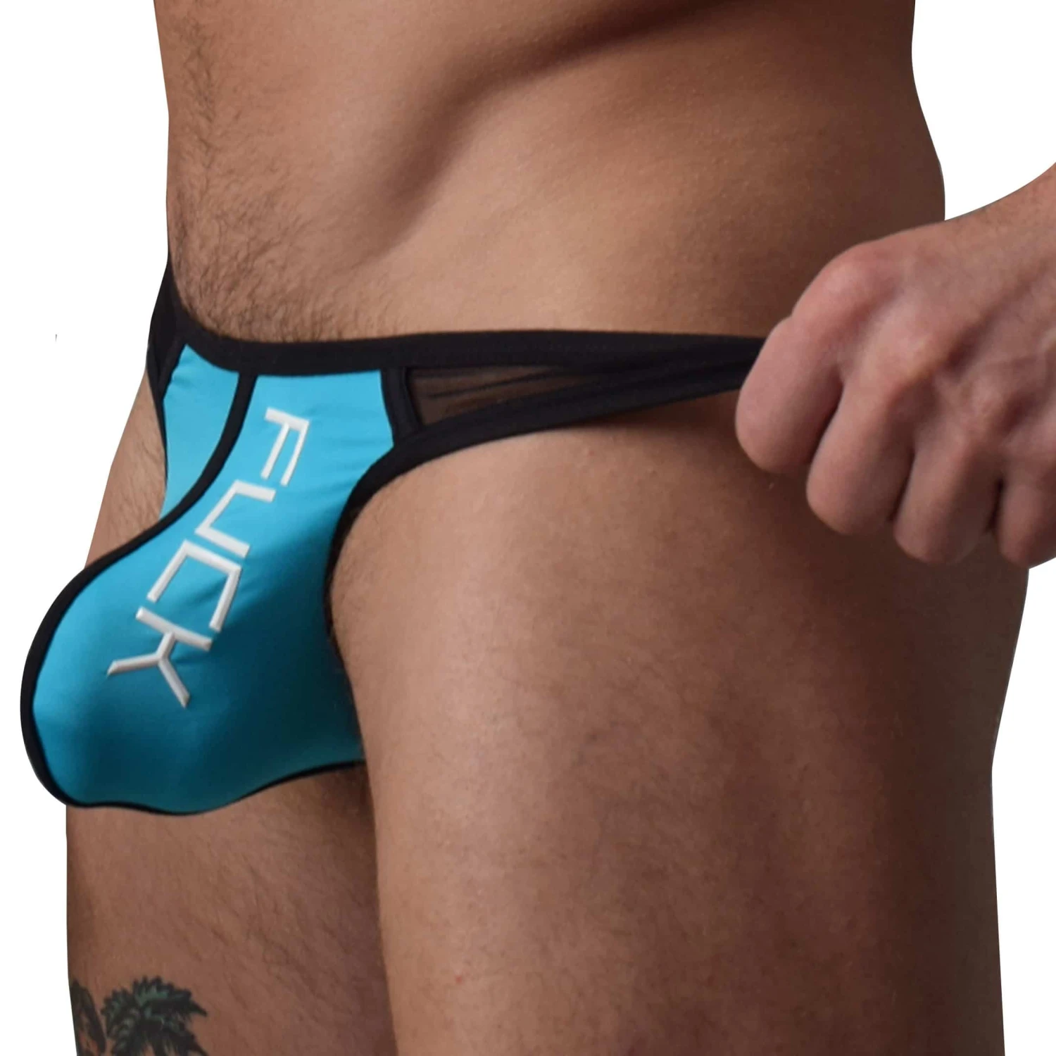 String ultra sexy en microfibre stretch douce et opaque. EmpiĂšcements en rĂ©sille transparente sur les cĂŽtĂ©s. Message FUCK en lettres siliconĂ©es sur la poche frontale. Patch Breedwell Ă l’arriĂšre