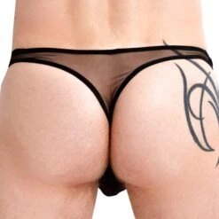 String en tulle transparent, doux et léger. Coupe minimaliste super taille basse. Poche frontale non doublée. Fine ceinture élastique.