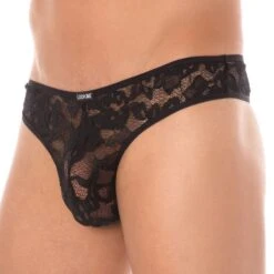 String taille basse ultra sexy en dentelle transparente fine et lĂ©gĂšre ornĂ©e d’un motif floral.