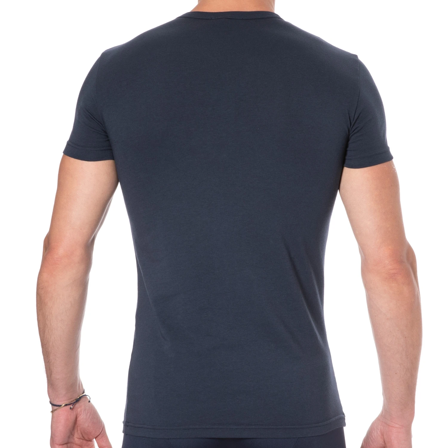 T-shirt en coton extensible trÚs doux et confortable. Manches courtes et col rond. Coupe ajustée. Logo Emporio Armani de couleur contrastée sur la poitrine.