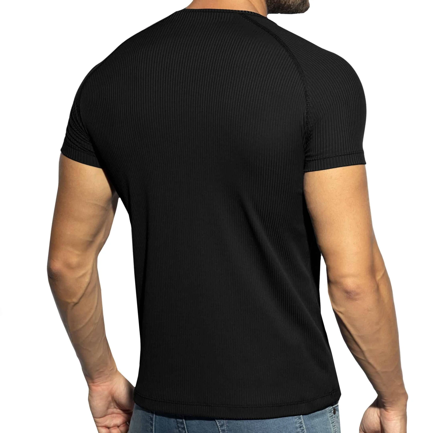 T-Shirt Col V Recycled Rib Noir