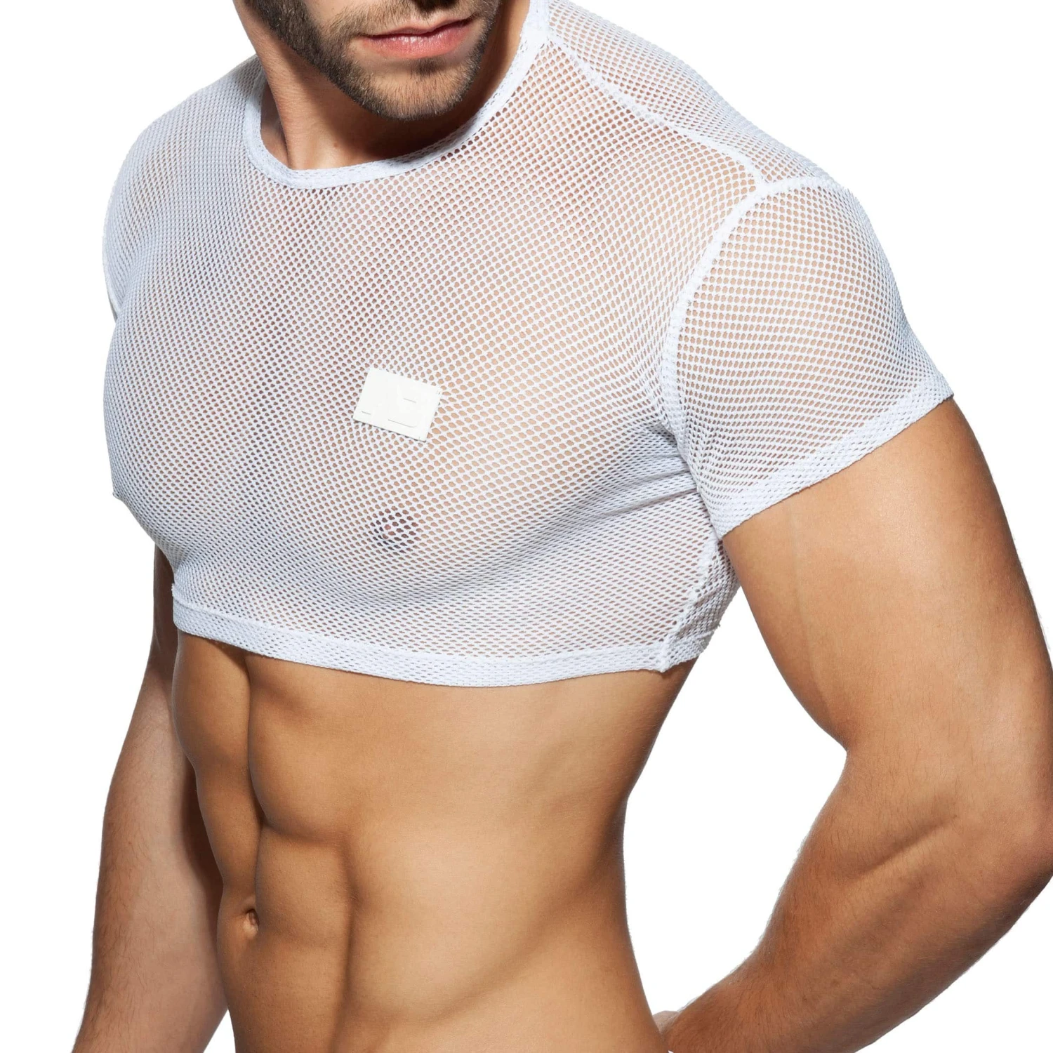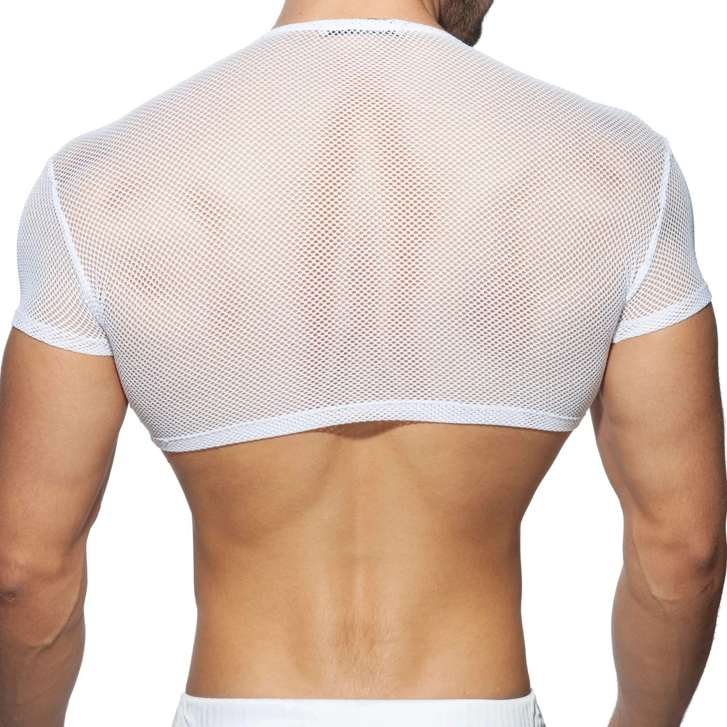 T-shirt trÚs sexy en mesh transparent non doublé de couleur unie. Sa coupe trÚs ajustée a été raccourcie pour dévoiler vos abdos. Logo Addicted en silicone sur la poitrine.