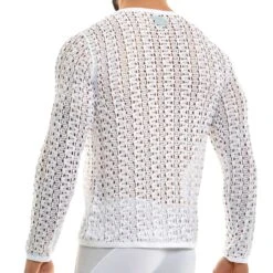 T-shirt à manches longues monochromatique et sophistiqué inspiré des années 70. Tissu tricoté façon crochet. Encolure ras du cou. Logo holographique Modus Vivendi cousue au dos.