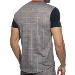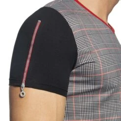 T-shirt Ă col V en molleton italien de qualitĂ© premium imprimĂ© d’un motif Ă©cossais Ă carreaux trĂšs tendance. Manches courtes de couleur contrastĂ©e. Fermeture Eclair sur la manche droite. Logo AD en silicone sur la poitrine.
