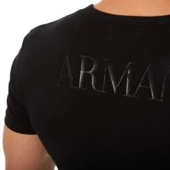T-Shirt en coton extensible trÚs doux et confortable. Coupe ajustée et élégante. Manches courtes et col en V. Grand logo Emporio Armani en silicone sur la poitrine et dans le dos.