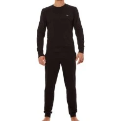 Tenue d’intĂ©rieur en coton doux et confortable. Pantalon avec 2 poches, cordon de serrage et bandes Ă©lastiques Ă la taille et aux chevilles. T-shirt Ă col rond et manches longues brodĂ© du logo Emporio Armani sur la poitrine.