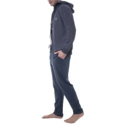 Tenue d’intĂ©rieur en matiĂšre douce et confortable. Pantalon avec 2 poches, ceinture Ă©lastique et cordon de serrage. Veste Ă manches longues et capuche en jacquard tricotĂ©, avec fermeture Eclair intĂ©grale et deux poches.