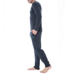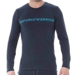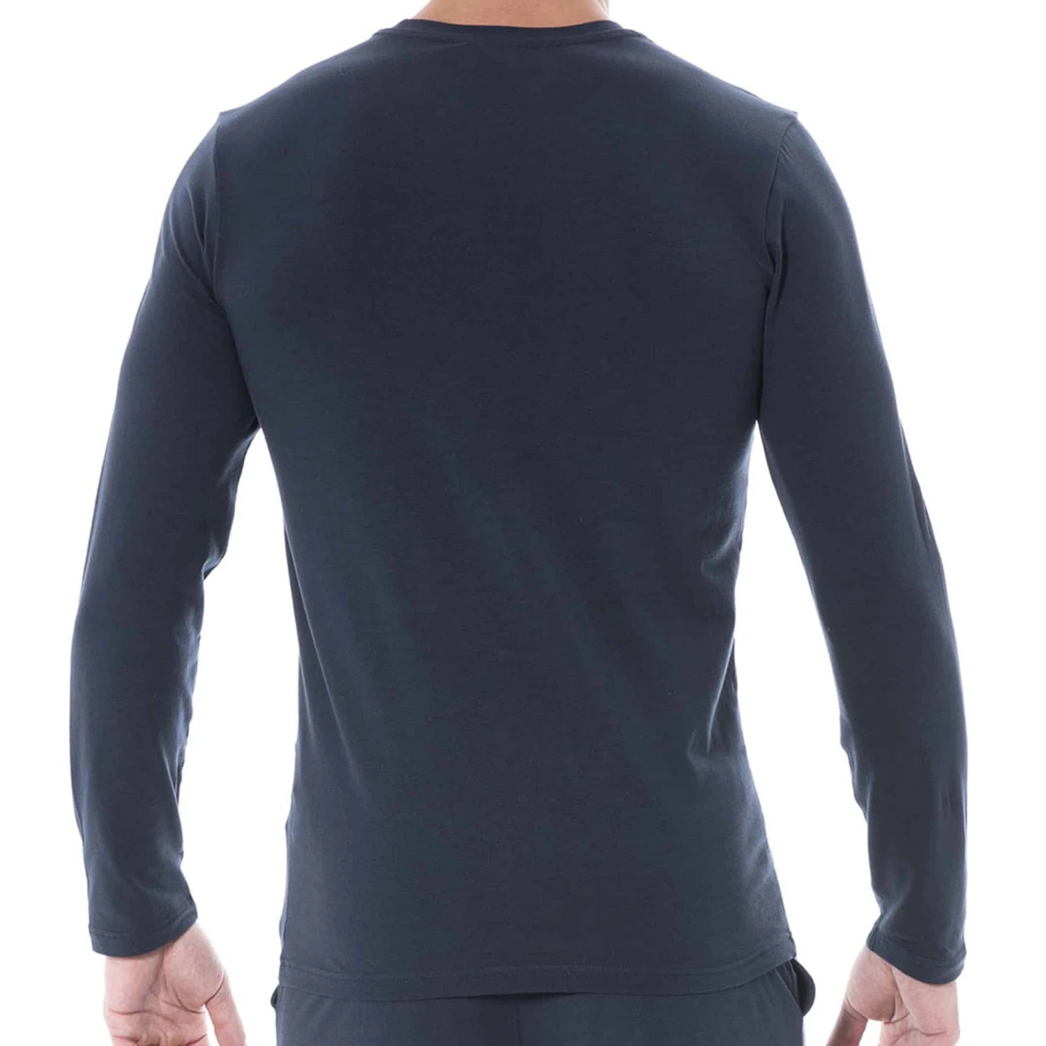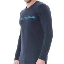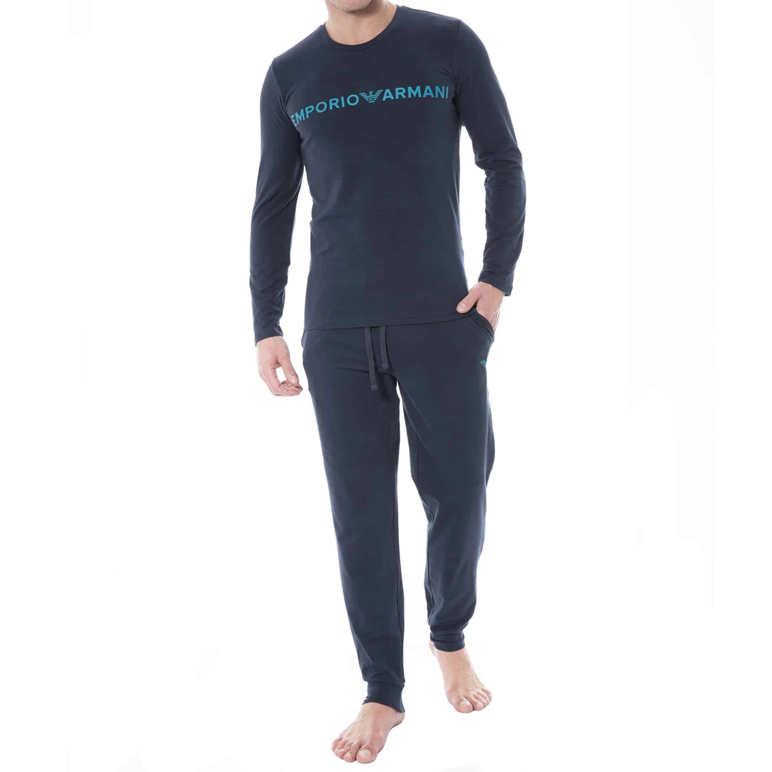Tenue d’intĂ©rieur en coton doux et confortable. Pantalon avec 2 poches, cordon de serrage et bandes Ă©lastiques Ă la taille et aux chevilles. T-shirt Ă col rond et manches longues imprimĂ© du logo Emporio Armani sur la poitrine.