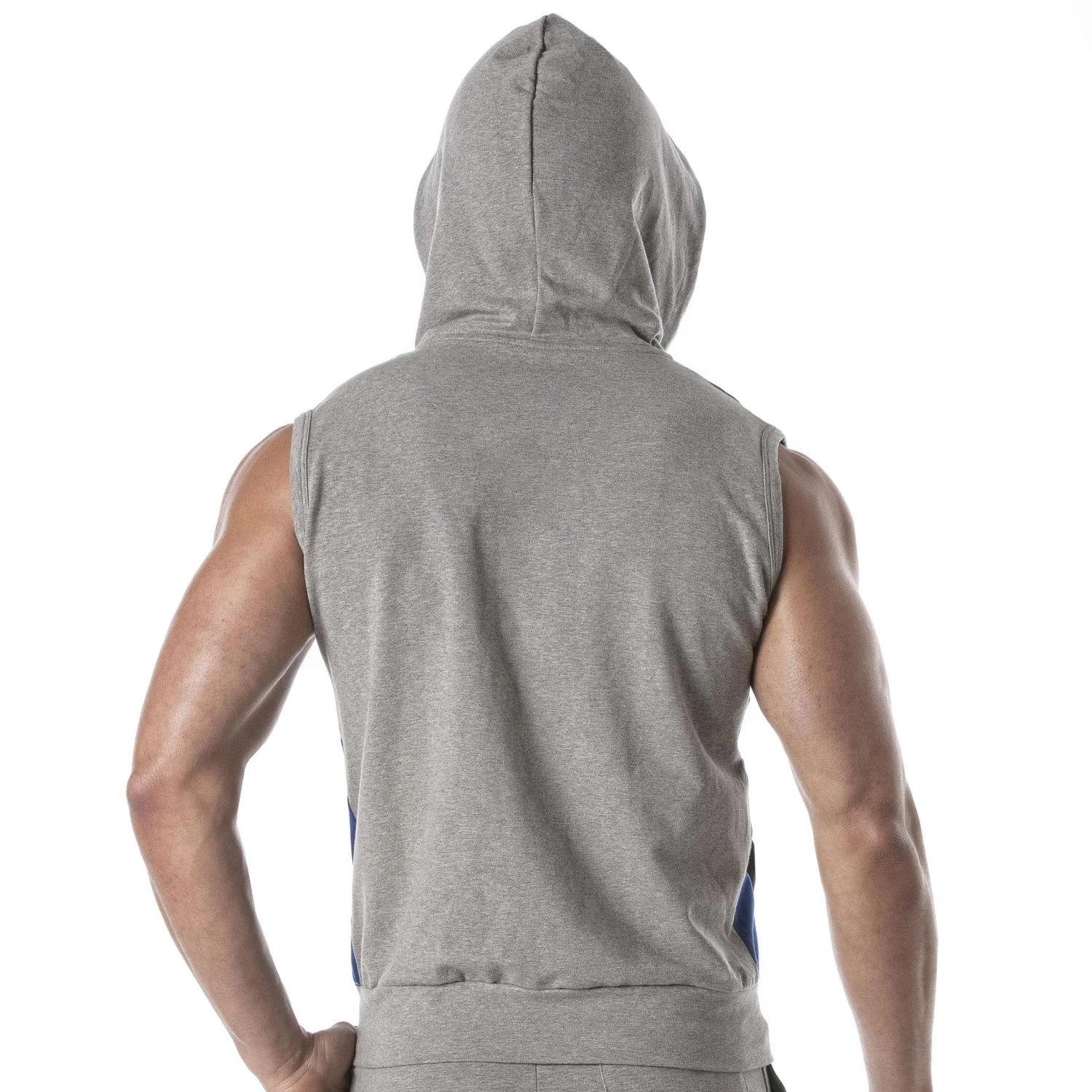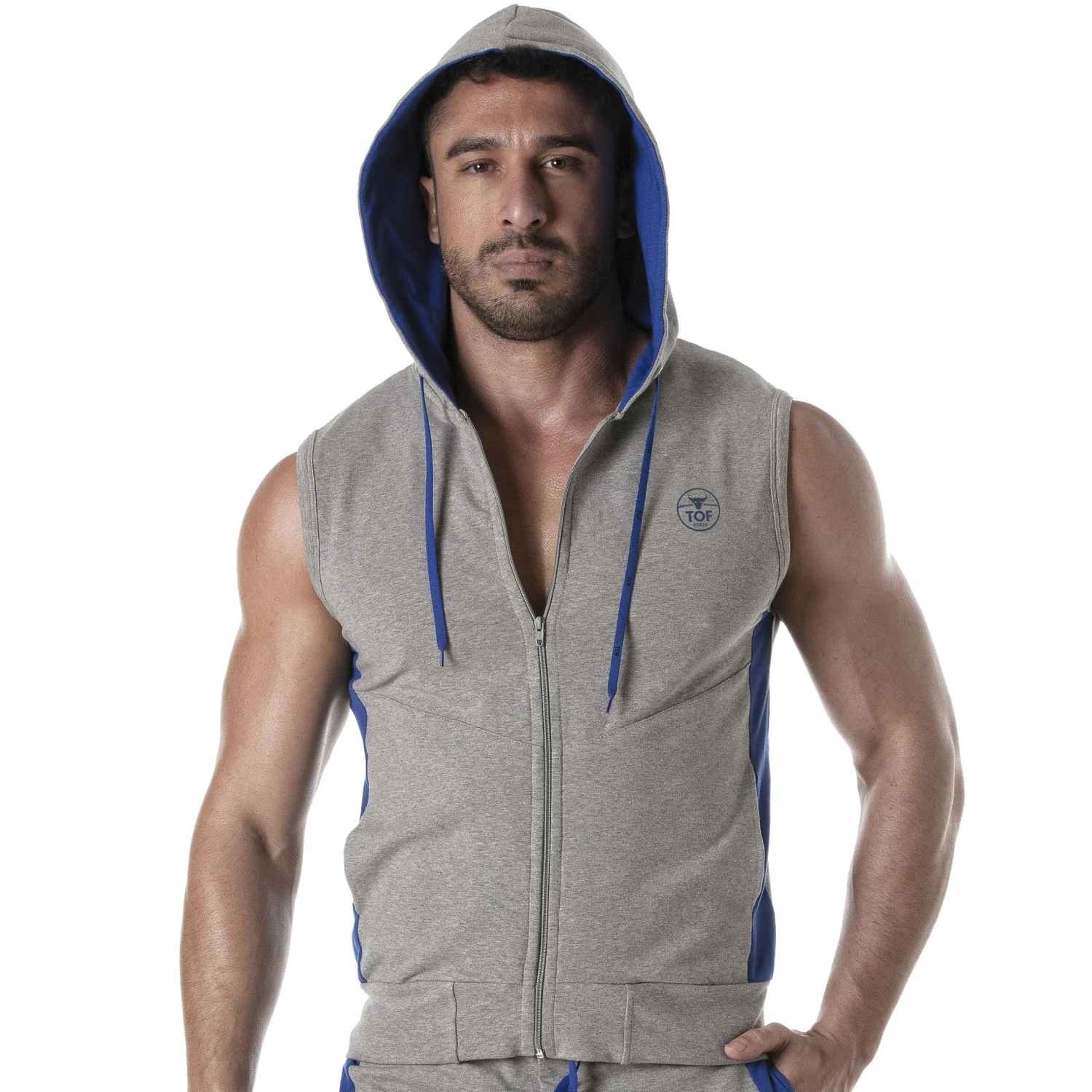 Veste sport sans manche en coton éponge super doux et respirant. Fermeture Eclair intégrale. 2 grandes poches. Capuche avec cordon de serrage. Détails de couleur contrastée. Bande élastiquée à la taille. Logo TOF Paris imprimé sur la poitrine. Fabrication française.