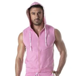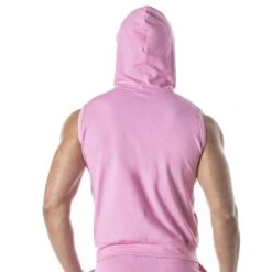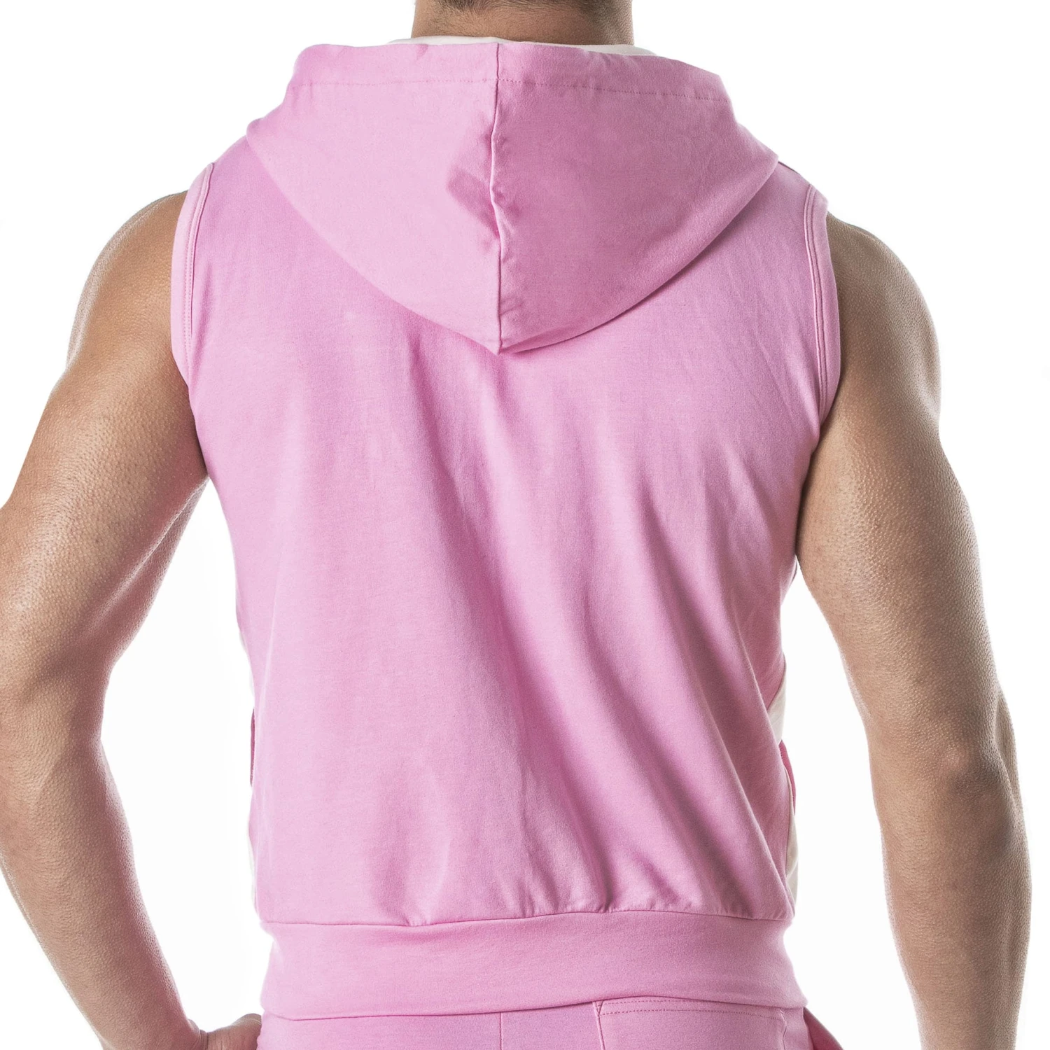 Veste sport sans manche en coton éponge super doux et respirant. Fermeture Eclair intégrale. 2 grandes poches. Capuche avec cordon de serrage. Détails de couleur contrastée. Bande élastiquée à la taille. Logo TOF Paris imprimé sur la poitrine. Fabrication française.