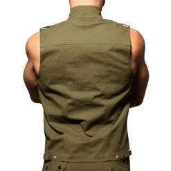 Veste sans manche d’inspiration militaire en coton Ripstop. Col montant et fermeture Eclair intĂ©grale. 5 poches, dont 2 plaquĂ©es sur la poitrines. Pattes sur les cĂŽtĂ©s et les Ă©paules. Collection capsule en Ă©dition limitĂ©e.