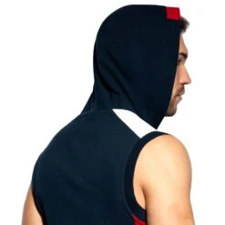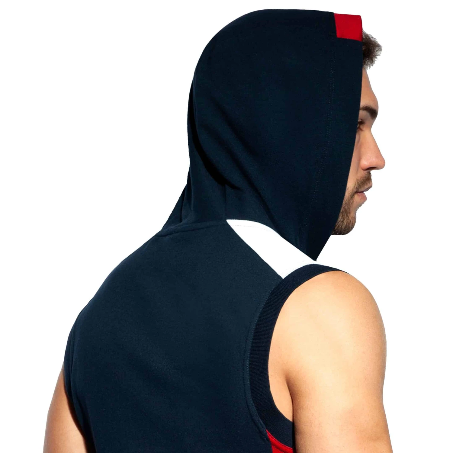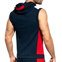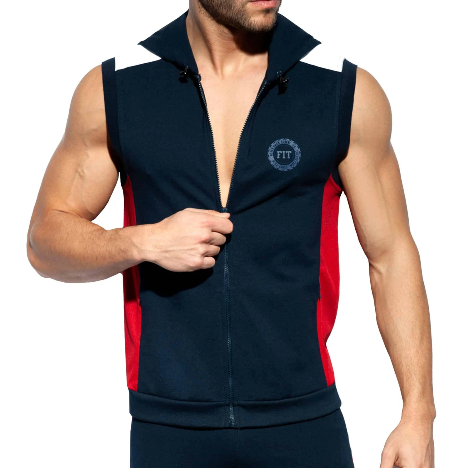 Veste sans manche en mélange de coton et de microfibre. Capuche avec cordon de serrage. Fermeture Eclair intégrale. Détails de couleur contrastée. Logo FIT sur la poitrine. 2 poches zippées.